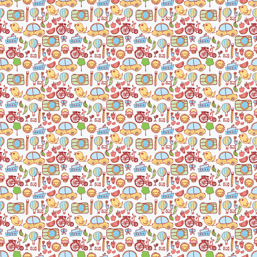טפט קיר זה מתאים לחדרי ילדים והוא כולל שלל של איורים צבעוניים לילדים: מכונית צהובה, שמש מחייכת, ציפור קטנה ועוד.